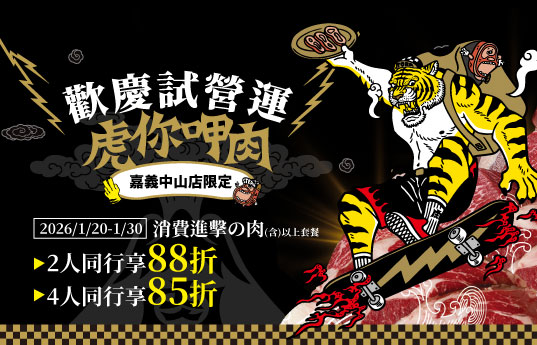 2人同行,憑券消費858進擊の肉(含)以上套餐,享88折!!